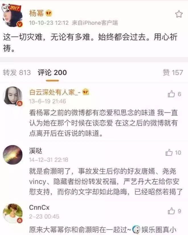 后来有网友看到杨幂发的微博很有问题,才知道俞灏明和杨幂有过一段。