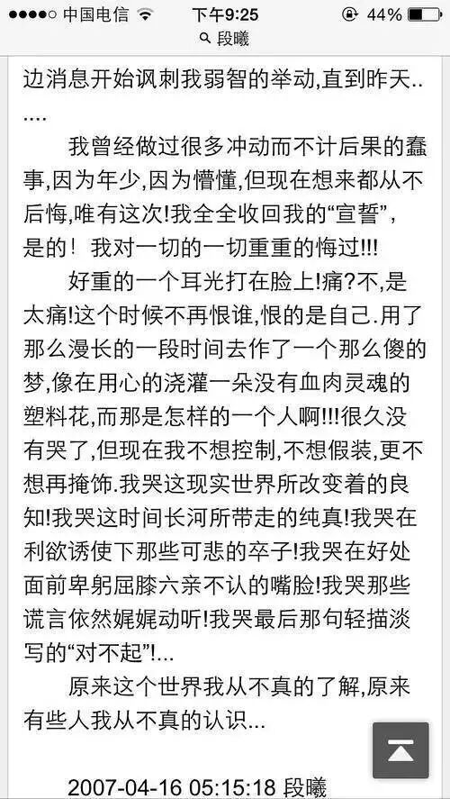 段曦后来因为气不过还在网上写了一篇文章说了这个事情: