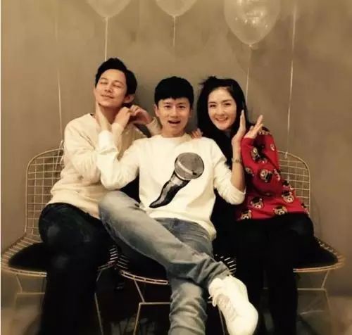何炅生日那天,PO出自己和老婆谢娜以及何炅三个人的亲密合照~