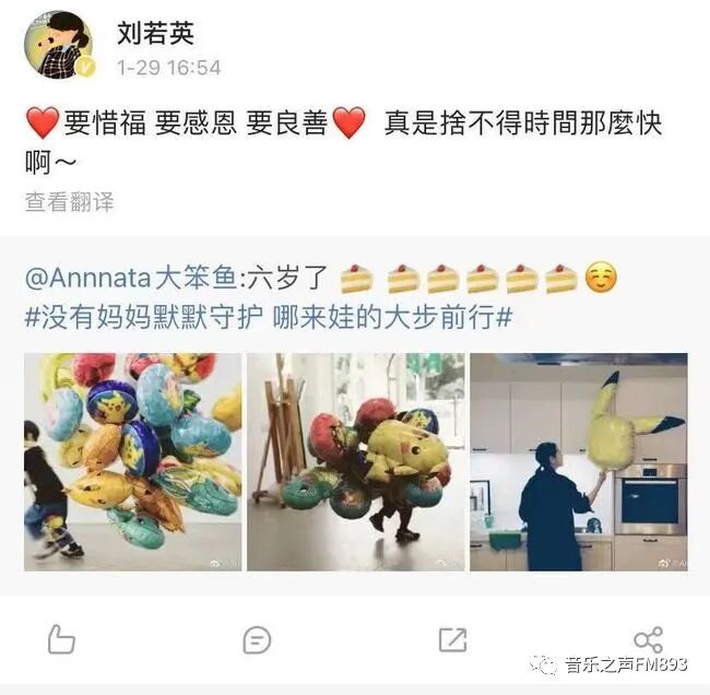 年初刘若英的丈夫在微博上晒出刘若英为儿子生日布置的照片。