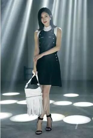 江疏影的私服也是超赞的!白色的无袖上衣搭配黑色的吊带裙,脚踩黑色的一字带凉鞋,手拎白色的流苏包,简单的黑白搭,舒适干练又不失女人味!