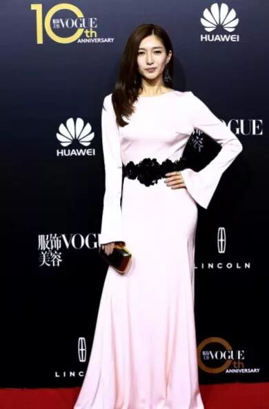 某活动中,江疏影身穿一袭长裙,腰间黑色腰带的加入更显身材高挑!侧分微卷发型,对镜凹造型甜笑的她端庄优雅!