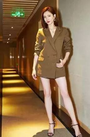 驼色的西装外套搭配黑色的一字带高跟凉鞋,玩起下衣失踪,凸显出逆天的大美腿,侧分齐肩发,对镜凹造型的江疏影化身为都市新女性,干练有范!