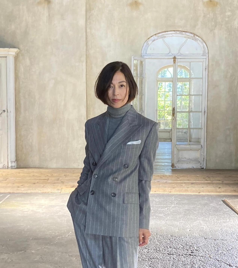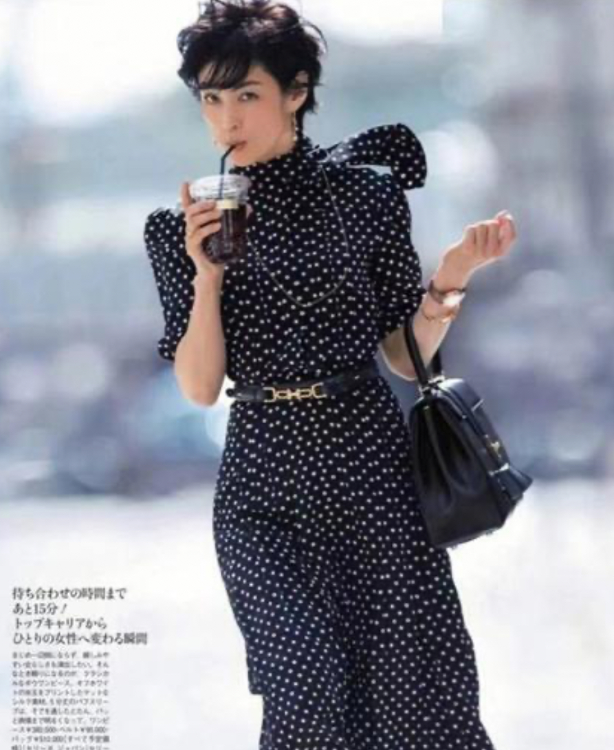 照片里保奈美的西装,基本都选的是简单直筒版型,看着跟大路货没什么区别,但每一套都有巧思。稍微敞开穿的时候,袖口稍微挽一下,正好露出腕骨,整个人更显利落,拍照时无论正面还是侧面,线条都很流畅。她的黑西装加了几颗哑光金属钮扣,仔细一看,每颗按钮都不是亮到晃眼,而是微微有光泽,远看顺眼,近看有质感,和那些一味追求logo的套路完全不一样。