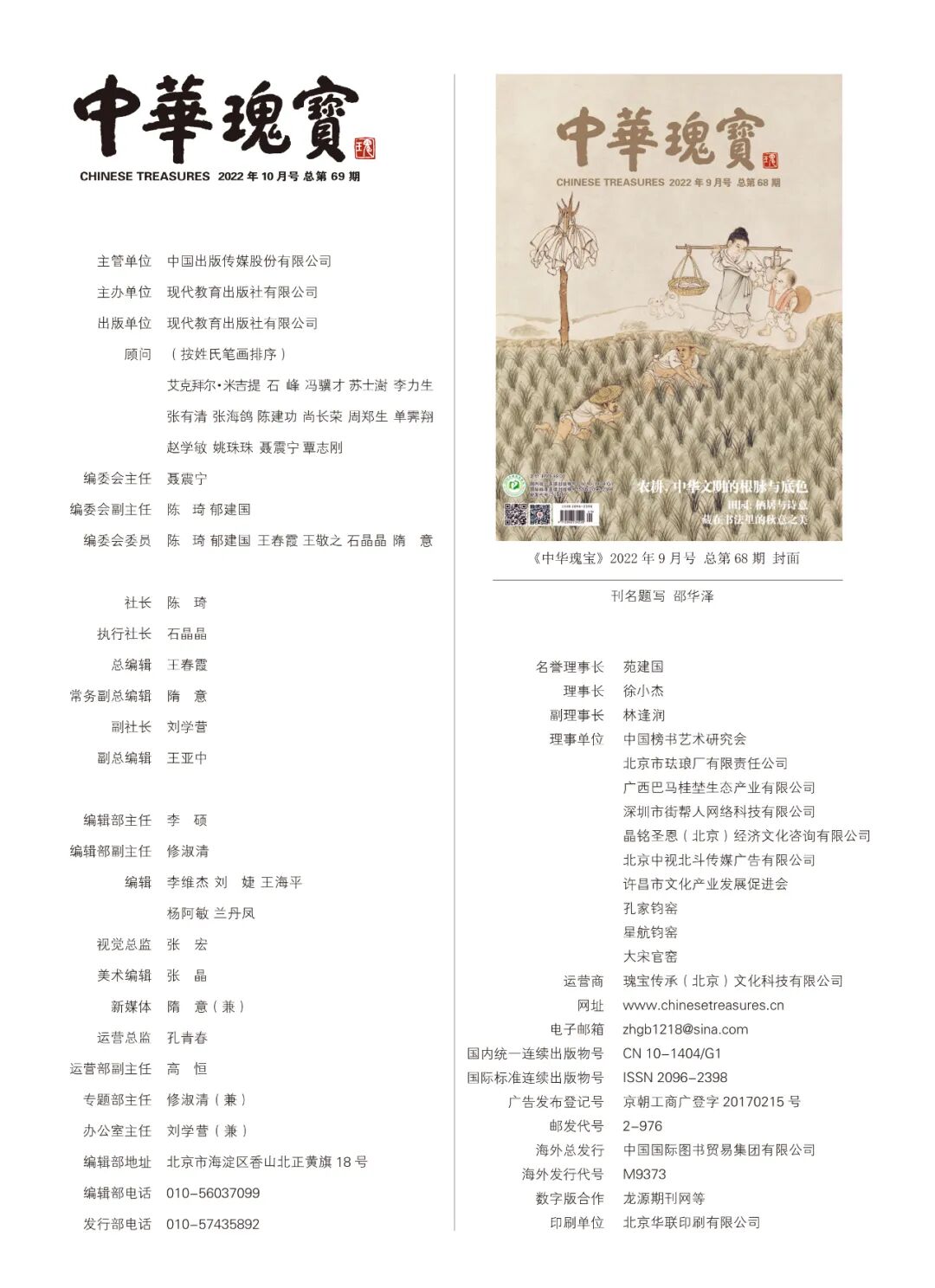 北京市海淀区香山北正黄旗18号 《中华瑰宝》杂志编辑部(100093)