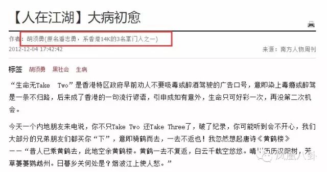 2012年病情好转期间,他放下了西瓜刀转揸笔,用14k三名掌门人之一的身份为《南方人物周刊》写专栏,一年间成为中国当红的专栏作家。