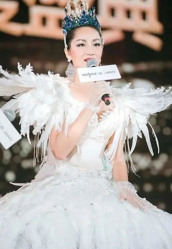 白色羽毛款式的裙子非常的有个性的,穿起来还真的很像是一个公主的样子,显得比较高贵。这个款式是很适合瞿颖的,显得她的脸看起来都小巧挺多,好好包装一下也很美。