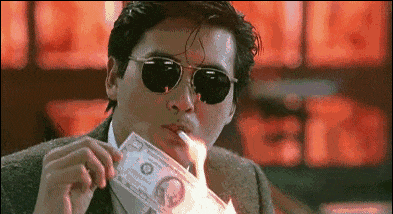 西装、油头,嘴里永远叼着一根火柴。用假钞点烟的模样,堪称经典中的经典。