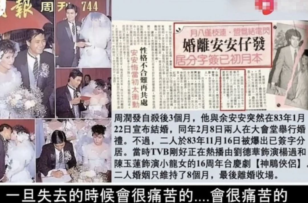 1982年,为情自杀未果、27岁的周润发,忽然在3个月后的1983年1月22日,官宣与女演员余安安闪婚。