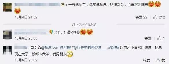 除了这些巧合的因素(虽然菓妹感觉“重羊”那个强行碰瓷农历重阳节……),杨洋自己发微博也喜欢在最后加一个“咩~”字,所以,杨洋才是最先用“咩”的那个人,后来的都是冒牌货!