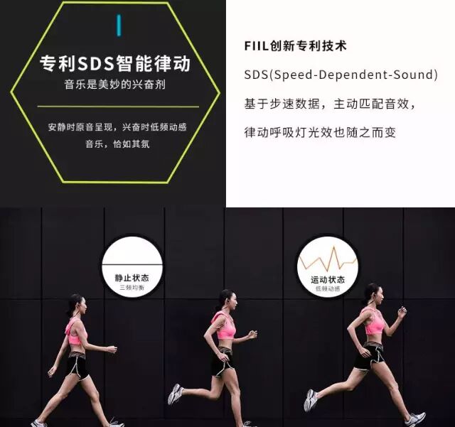 FIIL Carat自研发的SDS(Speed-Dependent-Sound)智能律动,基于心率和步速数据,主动匹配音效,并改变律动呼吸灯光效,休息时原音呈现,运动状态低频动感。