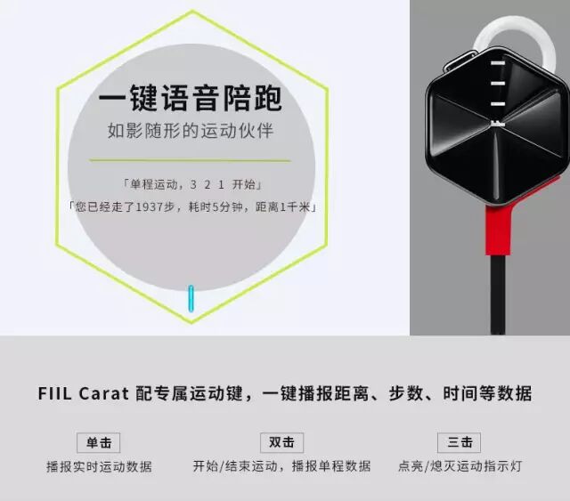 然而Fiil Carat并没有局限于耳机已有的功能,而是有独门秘笈的。FIIL Carat内置三轴加速计,支持全时计步和单程计步,无需运动手环也可计步,,并配备专属运动键,可一键播报距离、步数、时间等数据,语音陪跑,语音播报。
