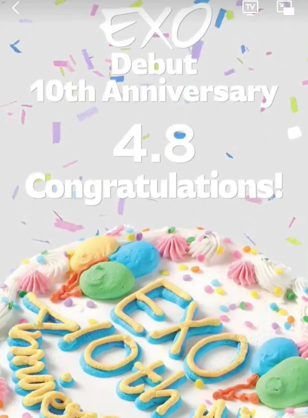 组合官方庆祝:“EXO Debut 10th Anniversary 4.8 Congratulations!”