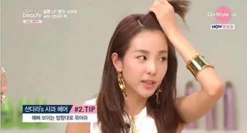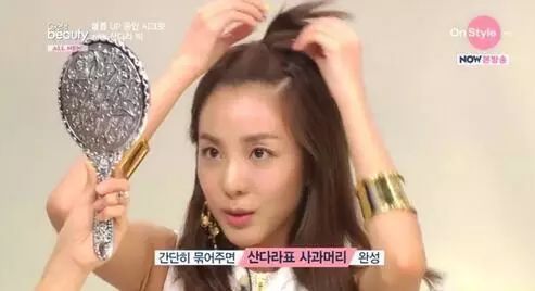 把刘海后面的头发多分一点儿过来,就可以从傻白甜少女到妩媚女人。