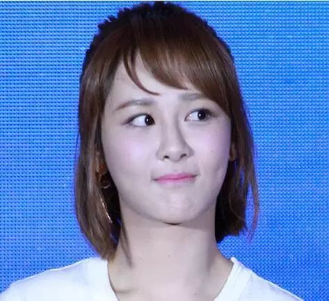 谢娜,前几个月尝试齐刘海,倒是把脸型轮廓柔化了。