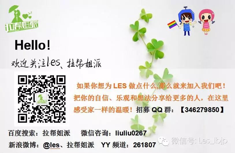 每一个螺丝的家(微信号:les_lbjp),Les、拉帮姐派,随时随地给你爱的讯号!随时随地了解圈类各种新鲜事儿……