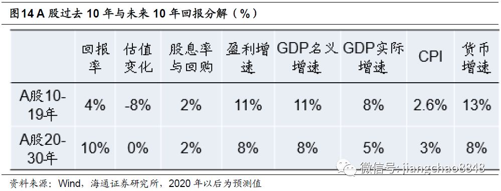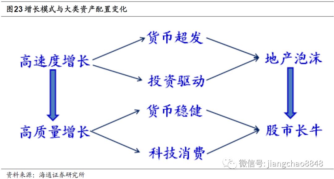 总结来说,我们认为随着中国不再超发货币,经济将从高速增长进入中速增长时代,经济增长的动力从投资转向消费与科技,这其实是更高质量的增长。反映在资产配置上,靠买房对抗货币贬值的时代正在过去,而股市将成为中国经济增长的晴雨表,未来10年的中国股市有望演绎美国80年代以后的长期慢牛行情。