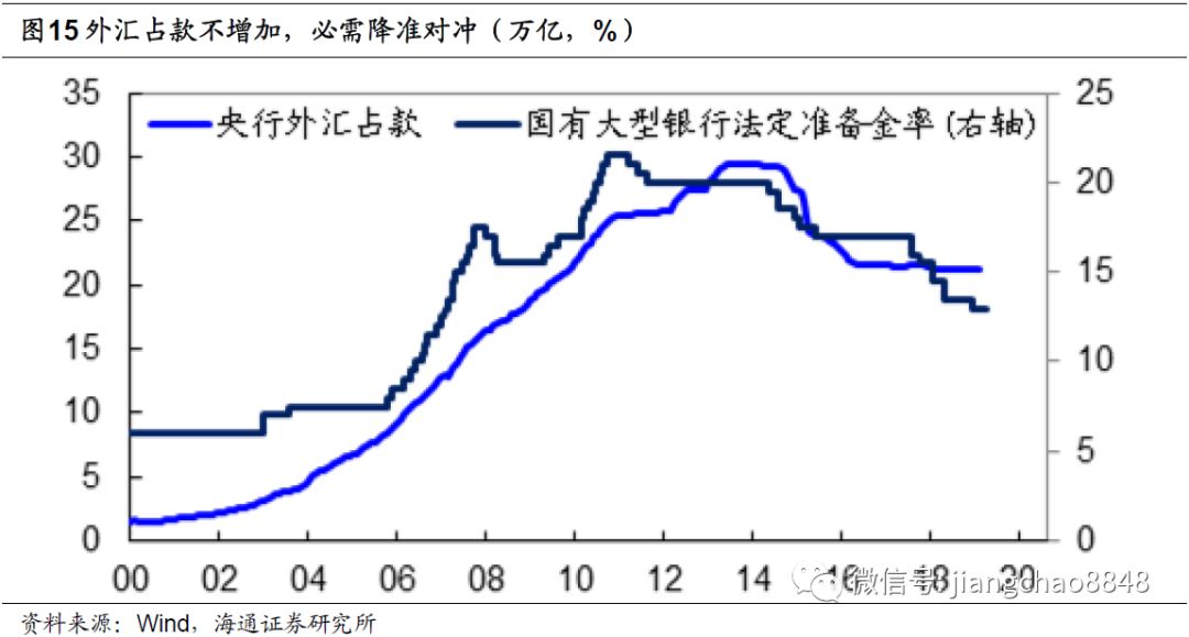 首先,降准不能被视为大幅放水。证据就是过去一年央行两次降准合计150bp,但是利率水平基本维持不变,原因在于中国的银行每年新增存款超10万亿,需要缴纳法定准备金约1.5万亿,因而降准150bp只是正常对冲。