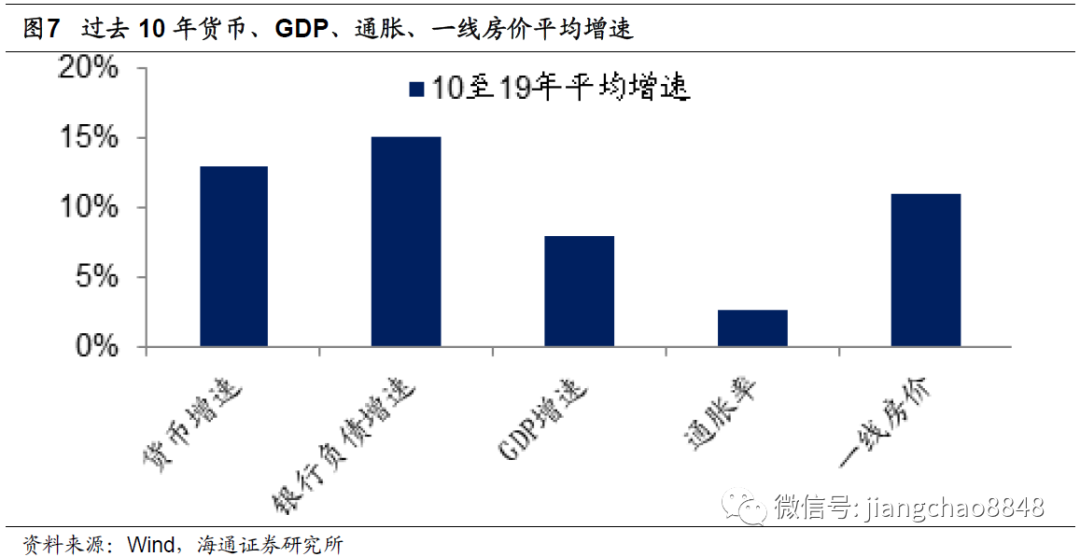 而房地产是实物资产,尤其是在一二线城市,土地的供应是有限的,所以大家理所当然把房地产看做是对抗货币贬值的核心资产,将13-15%的货币增速视为买房的预期回报率,而一二线城市房价的真实涨幅也与之非常接近。