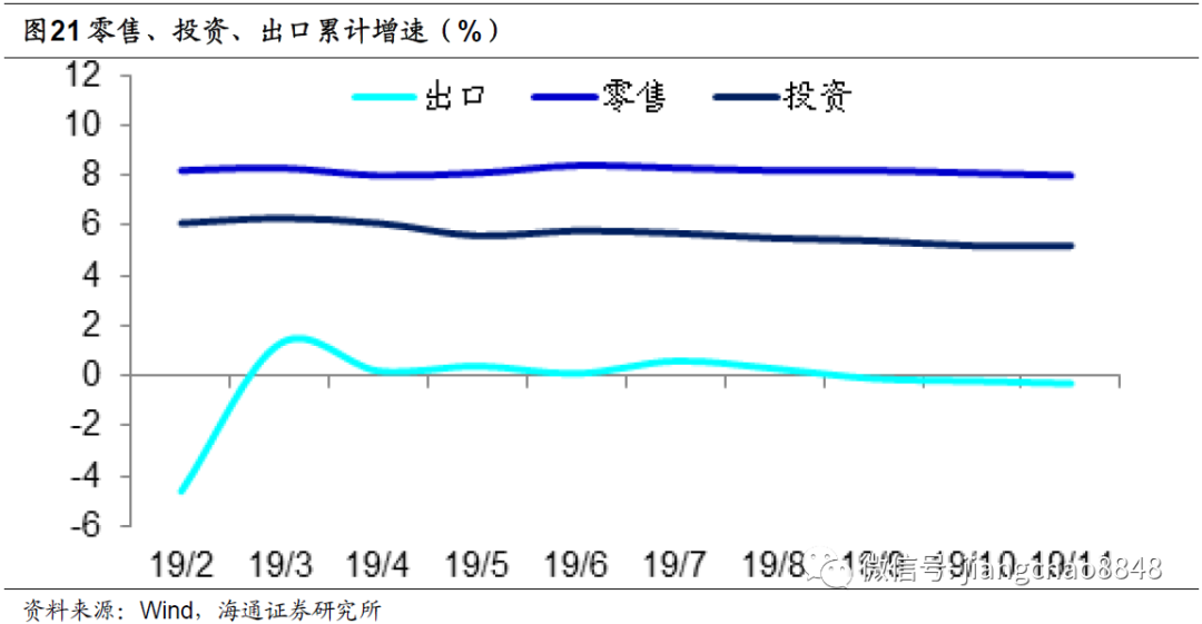 但是当前中国的货币增速仅为8.2%,货币增速和GDP增速的缺口在2%-3%左右,这意味着通胀预期完全可控,因而哪怕猪价大涨推高了短期通胀水平,央行也不用收紧货币政策。在19年末和20年初,央行相继下调了5bp的公开市场利率和50bp的法定存款准备金率,货币政策依然是宽松的取向。