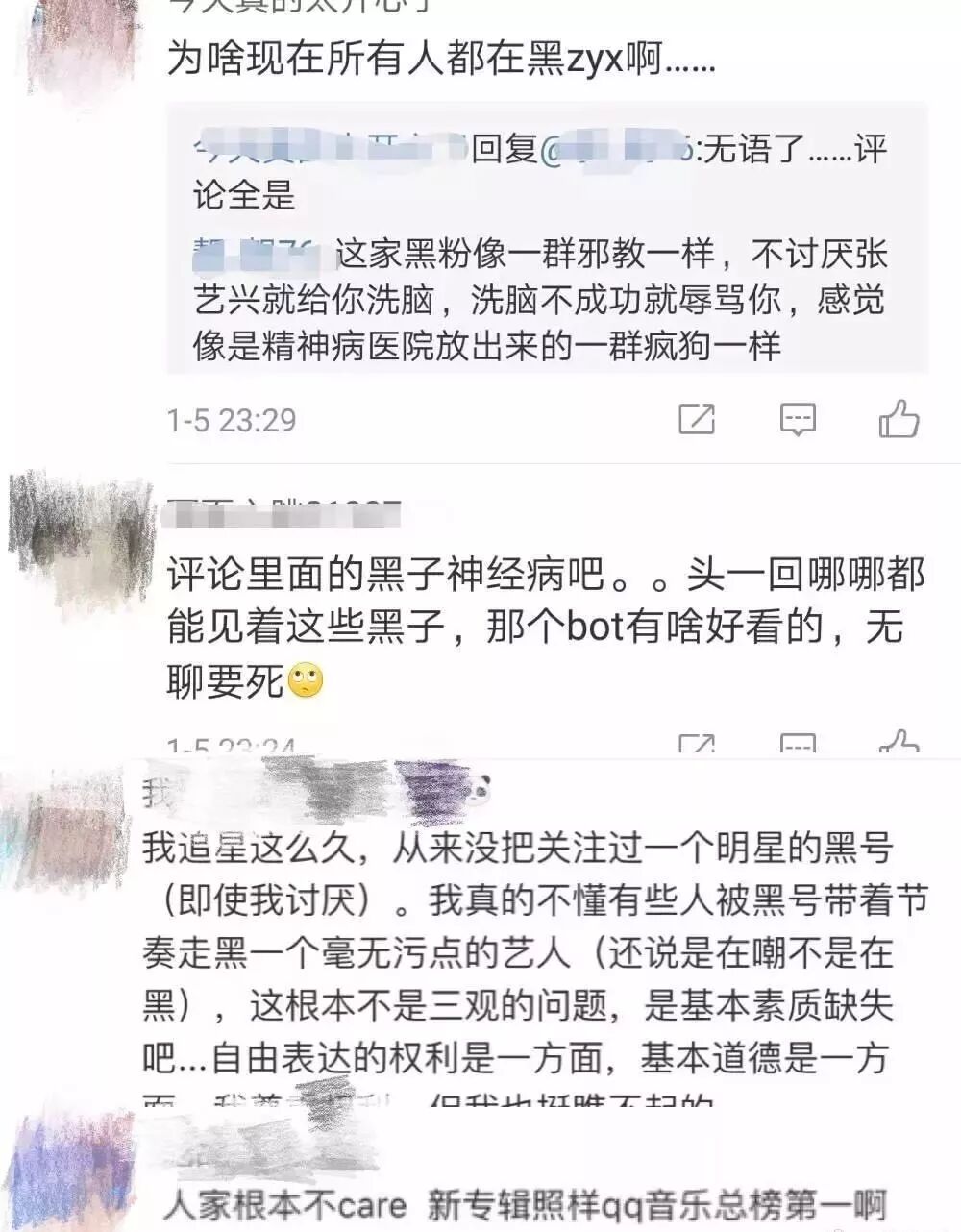 说针对音乐的批评他每条都会看,不然以为他十天不睡觉干嘛去了??看得他流量都快用完了,而且越看批评越觉得自己流量要完了。