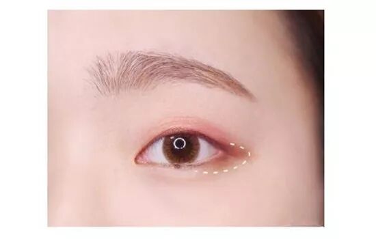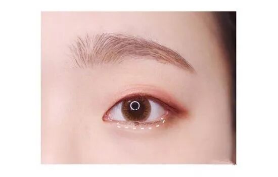 Step3:因为眼下没有阴影的话眼睛看起来会肿,所以选一个浅棕色眼影抹在眼尾的下三角区,注意要轻轻的晕染,颜色不要太深噢。