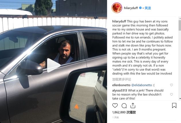 希拉里·达芙(Hilary Duff)正在孕期中,9月23日,怀孕9个月她在社交网站透露被一名疑似狗仔队的男子跟了整整一天,十分担忧。