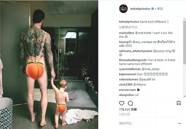 不但po宝宝,连老公Adam的肚肚和PP都秀出来,超可爱,也看得出他俩真的非常的恩爱!