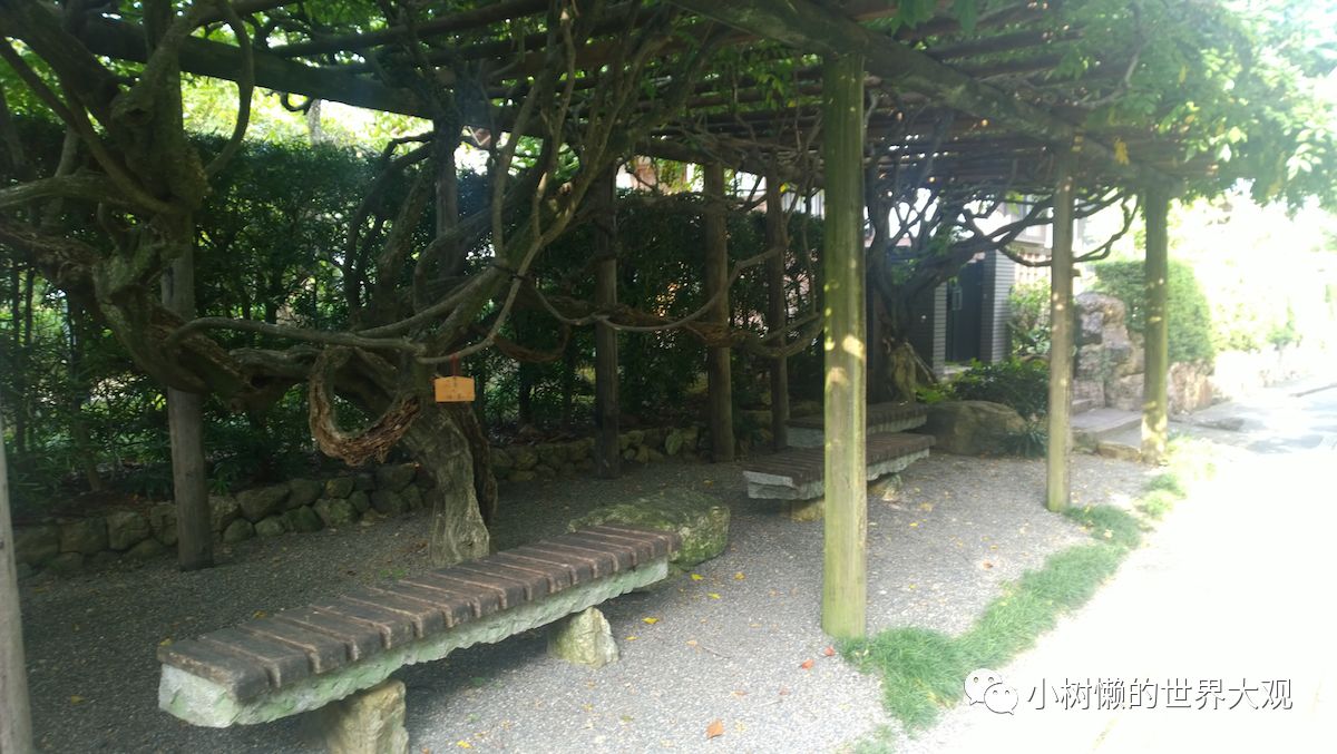 老公走出来的时候,我和儿子还在这个紫藤架子附近玩石头。