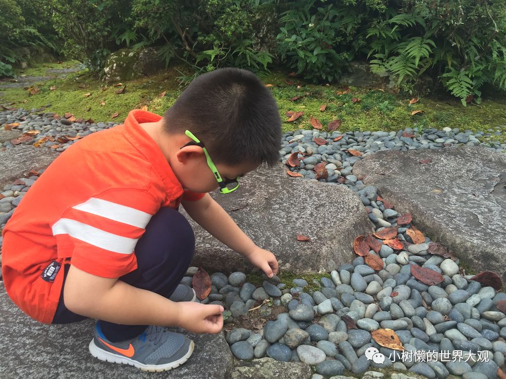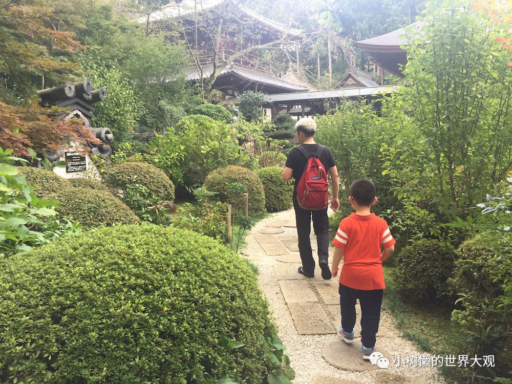 进这个寺庙要脱鞋,在加上里面特别安静,我不想脱鞋麻烦,也怕小孩在里面打闹太吵,就跟儿子留在外面的紫藤架下玩石头,老公进去观赏庭院。