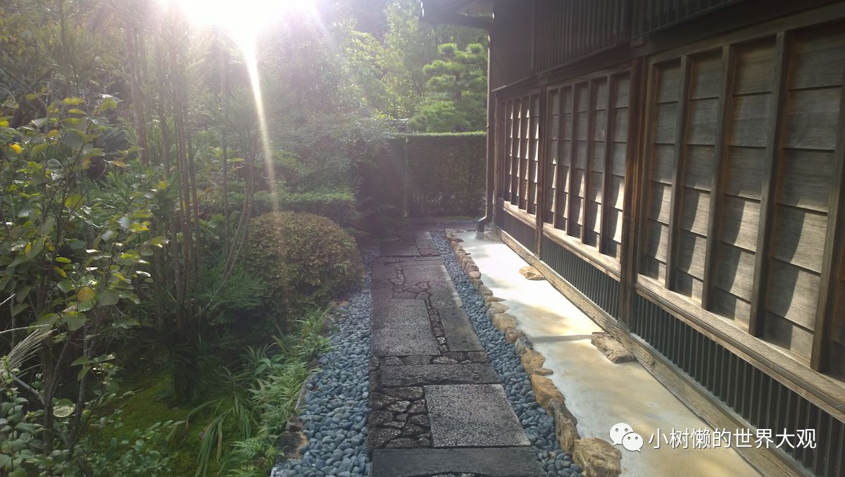 在外面也能看到枯山水的庭院,但是方向不同,意境也就比在室内屋檐下观看差了很多。