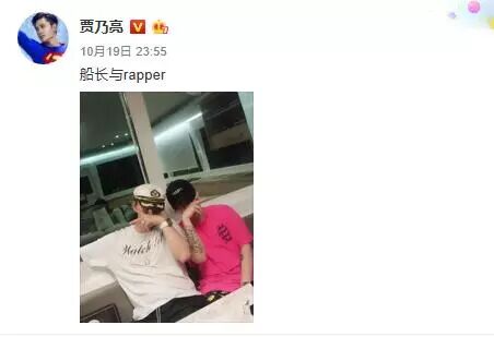 凤凰网娱乐讯 10月19日晚,贾乃亮晒出一张和嘻哈歌手PG ONE的照片,配文:“船长与rapper 。”照片中,贾乃亮戴着船长帽,PG ONE戴着鸭舌帽,俩人比着PG ONE的经典嘻哈Pose,十分帅气。