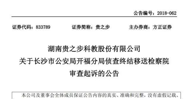 8月7日,贵之步公告称,由于犯罪事实清楚,证据确实充分,该案侦查已经终结,公司实控人郑靖已被公安局移送检察院审查起诉。