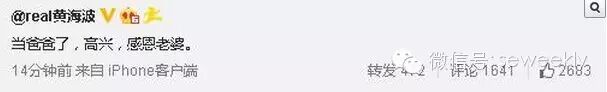 不过,当天凌晨一点左右,黄海波在微博发声,称“当爸爸了,高兴,感恩老婆。”疑似默认已和女友领证,否认未婚先孕。