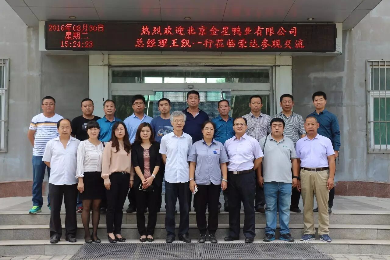 8月30日,北京金星鸭业有限公司总经理王凯一行莅临荣达参观交流。王总一行在公司董事长徐保旗、技术总监张慧玲、冷藏厂总经理牛广峰、孵化场负责人朱锋、合作社负责人徐伟、办公室殷燕等人员的陪同下参观了种鸭养殖小区、蛋鸭养殖小区、生态农场、合作社、饲料厂、冷藏厂和孵化场等公司产业。