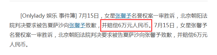 最后的结果是张馨予胜诉,判造谣人赔款六万。