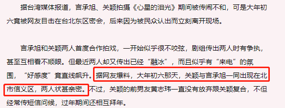 更值得深品的是,关颖突然某一天在社交平台更新了和言承旭的拍戏花絮照。