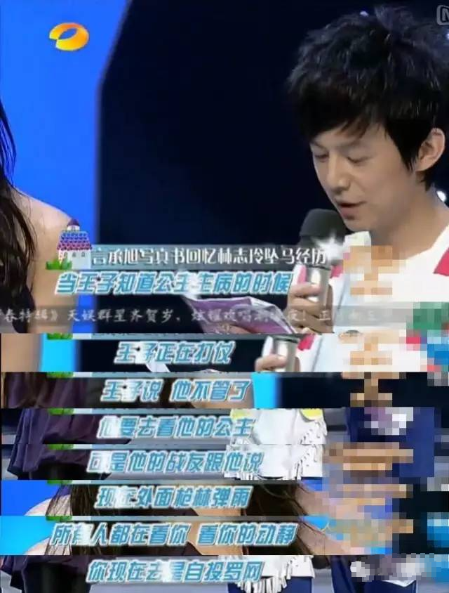 有一次,何炅在快本念了一段言承旭回忆林志玲坠马时候的心路历程。