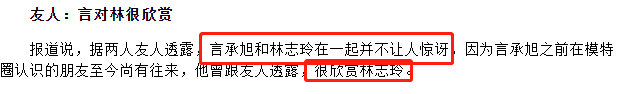 有些好事者还跑去向好友打听,而好友也不负众望,直言两人在一起并不惊讶,还爆料言承旭曾透露十分欣赏林志玲。
