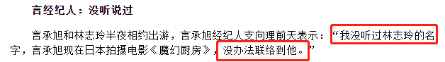 言承旭这边呢,则由经纪人出头:没听过林志玲的名字,他在拍戏,联系不到。