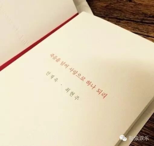 喜帖简单低调,一段文字“超越死亡,因爱而成为一体”,这句话就是两人定情音乐剧《皇太子鲁道夫》中安在旭给崔贤珠一枚戒指上印刻的话,因而对两人意义深重!!!