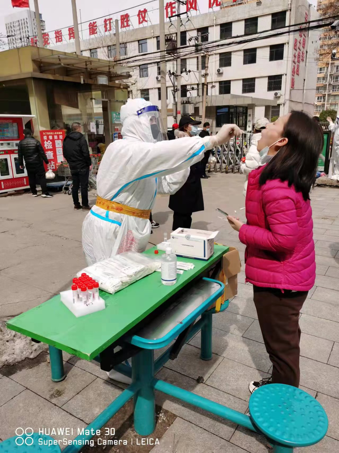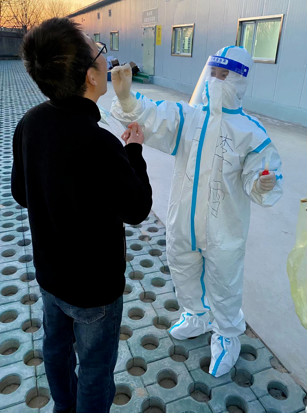 科研教育处彭雪寒、孟军华两位同志,接到支援一线任务后,第一时间支援核酸检测基地和社区核酸筛查队。她们虽未从医,但身为“工医人”的使命已深入骨髓,披上战甲,面无惧色!
