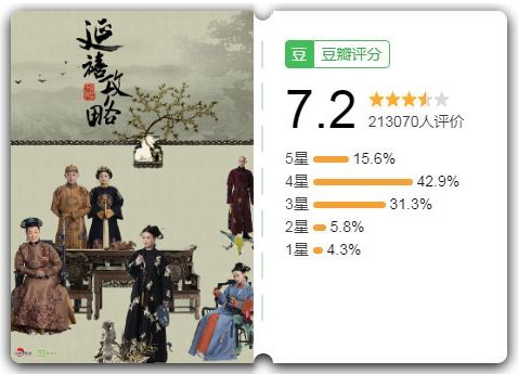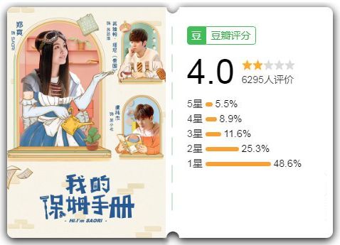 我注意到,已经超过21万人评价的《延禧攻略》目前的评分为7.2分,而只有6295人评价的《我的保姆手册》评分却仅为4.0分。