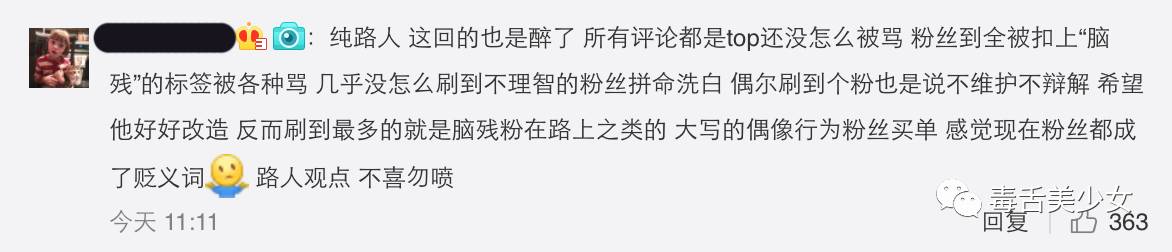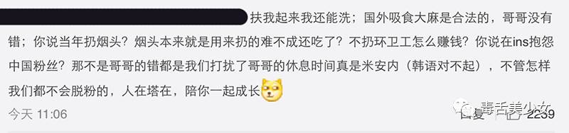 但认真想想…感觉除了个别脑残外,大部分饭有点可怜啊,尤其理智的那些,她们顶多表示不脱粉等改正,哪里会低龄到讲出“杀人放火都对”“愿意卖身帮买毒品”“他辣么努力,放松一下怎么了”这类话招黑呢?