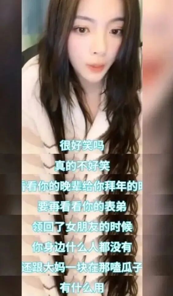 不仅如此,她还劝大家抓紧时间恋爱结婚生孩子,不然份子钱、压岁钱都亏了;并且她说要跟大家一起努力,明年找到另一半。