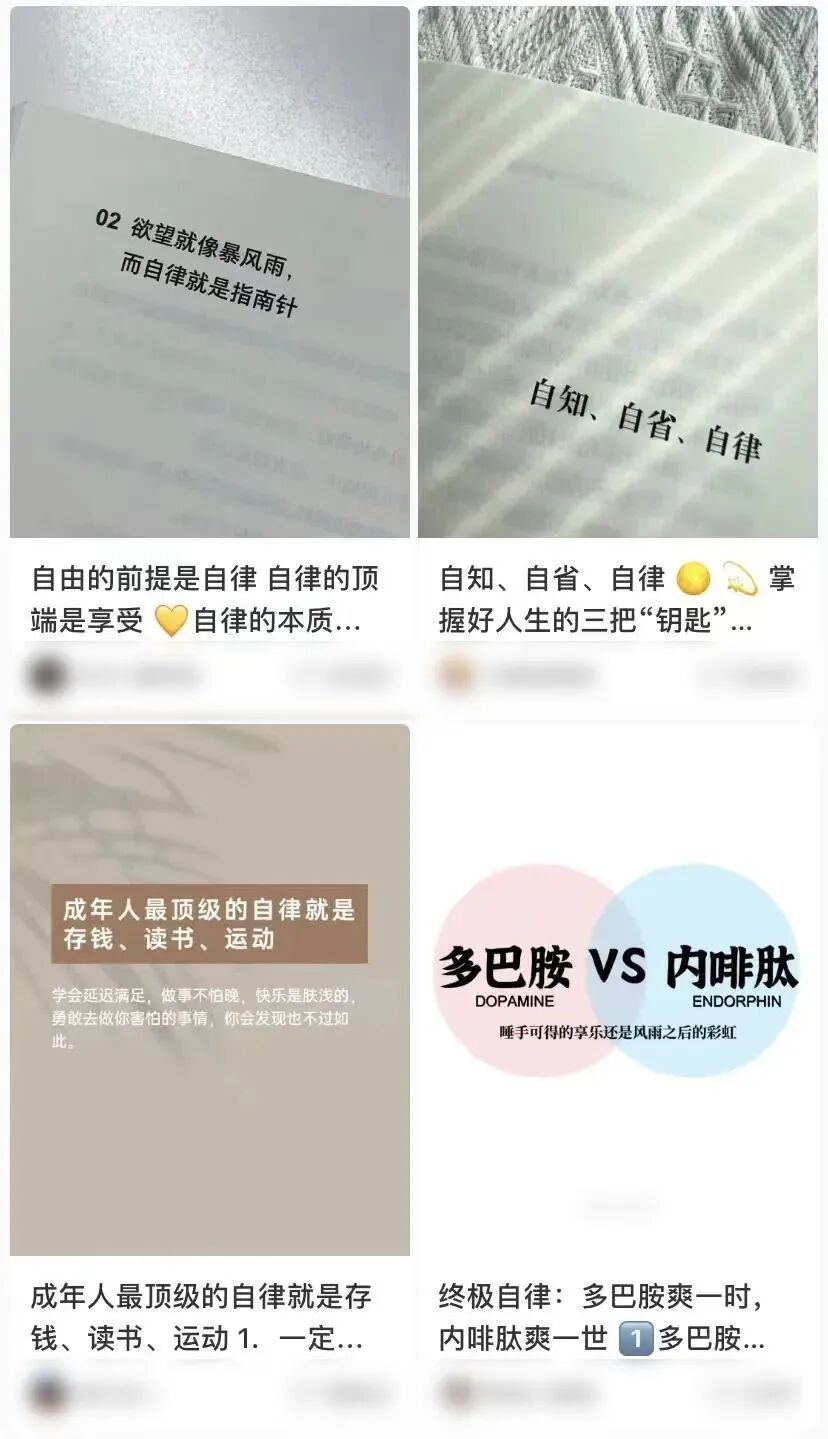 甚至出现了一种“自律博主”,专门教授人们如何自律的方法。