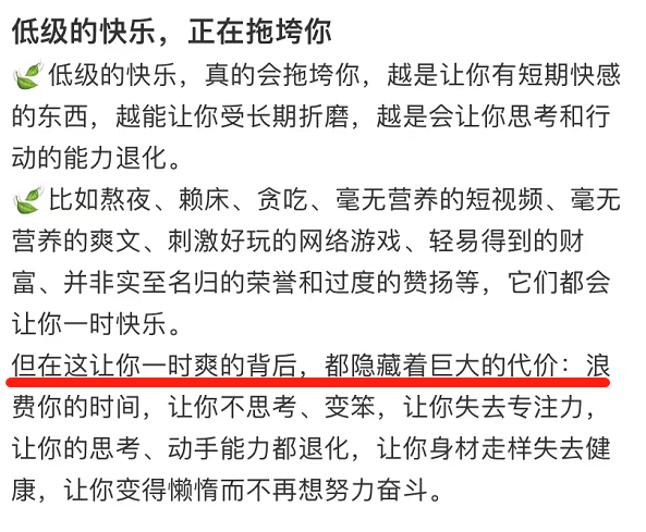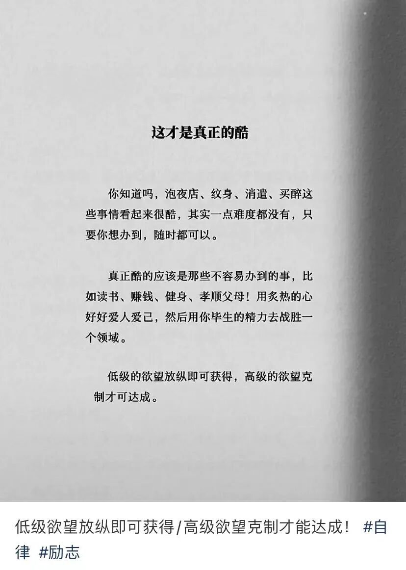 内容只要和自律沾上边,便仿佛是拿到了打开成功大门的万能钥匙。但凡表现出哪里不自律,则是“低级”“自控力差”“能力堪忧”。