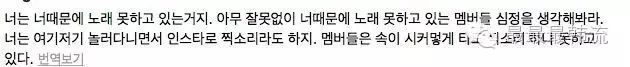 你是因为你自己唱不了歌,而什么错都没有的成员们是因为你唱不了歌。你现在又到处玩又老上传ins很嗨皮吗?成员们现在都躲着不敢发声呢!
