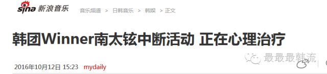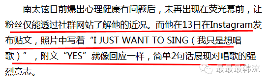 前段时间韩媒爆出了南太铉因为心理疾病暂停活动的消息,很快YG也确认了传闻并发表了公开立场。