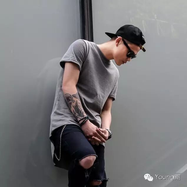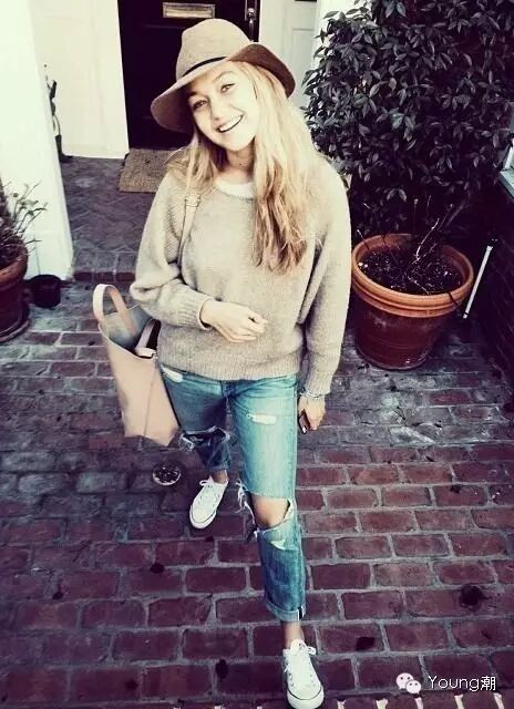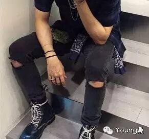 相信很多人的衣柜里都会有牛仔裤。各大秀场上“牛仔”元素绝对是必备的时尚单品。街拍中“牛仔”也是明星、大牌们的最爱,这个季节最容易搭配、最耐穿的绝对是破洞牛仔裤。够个性!够时尚!破洞的位置位于膝盖及以上,适合初尝破洞牛仔裤的人,破洞开口较大,像图左下位置的仁兄,建议走街头雅痞风。破洞的大小不同搭配不同,因人而异。